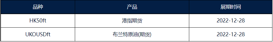 您好!受节假日影响,原定于 12 月 27 日进行展期换约的 HK50ft 产品将展延至 12 月 28 日。