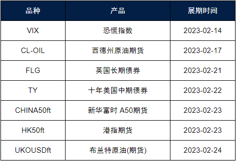 VT Markets 平台的期货产品:VIX (恐慌指数) 、CL-OIL (西德州原油期货)、FLG(英国长期债券)、TY(十年美国中期债券)、CHINA50ft (新华富时A50期货) 、HK50ft (港指期货) 、UKOUSDft (布兰特原油期货) 、即将于以下时间展开新合约,如持仓过夜将会收取展期费用。