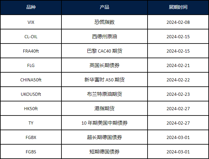 VT Markets 平台的部份期货产品即将于以下时间展开新合约,如持仓过夜将对换约造成的额外盈亏进行扣补。详情请见下方表格: