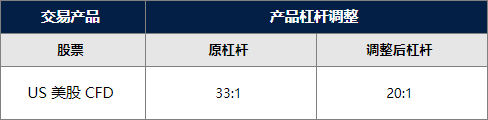 1. MT4、MT5 的 US 美股产品从原杠杆 33:1 调整为 20:1。
