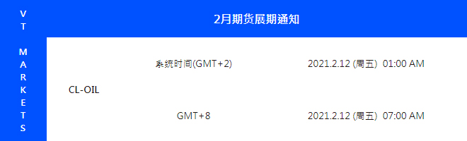 VT Markets 平台的期货产品:CL-OIL(原油期货)即将于以下时间展开新合约,如持仓过夜将会收取展期费用。