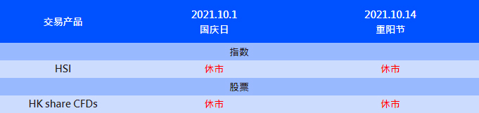 受国庆日、重阳节影响,VT Markets 部分产品交易时间将有所调整,详情请查看如下: