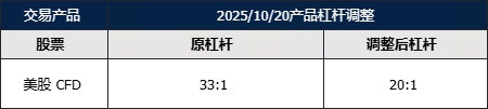 1. MT4、MT5 的 US 美股产品从原杠杆 33:1 调整为 20:1。