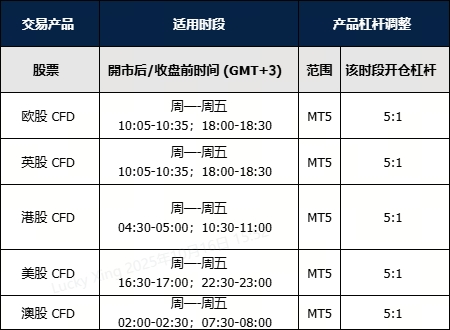 為了因应近期日渐波动的股票市场风险,VT Markets 将调整股票产品的杠杆设置,详请参考如下: