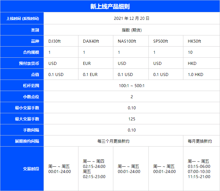 温馨提醒:HK50ft 将于 12 月 29 日 执行上线后的首次展期。