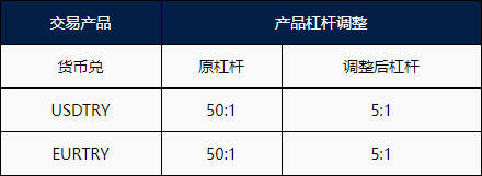 2.您在本次调整期间所持有的仓位将可继续持有,但调整后将无法开设新的里拉产品仓位